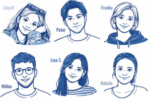 Wir sind Lina K., Peter, Franka, Niklas, Lina S. und Natalie – Studierende der Global Studies. Dank unserer unterschiedlichen fachlichen Hintergründe und individuellen Schwerpunkte bringen wir vielfältige Perspektiven ein und entwickeln gemeinsam kreative Lösungsansätze.